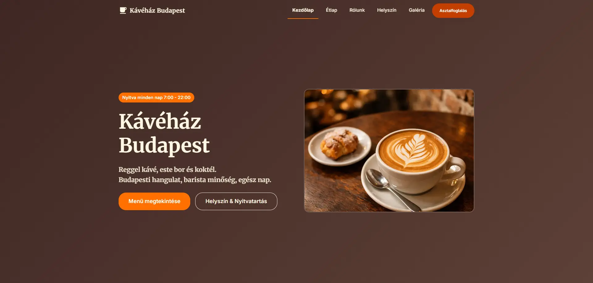 Egy modern, mobilbarát bemutatkozó oldal, amely azonnal bizalmat ébreszt és megmutatja a vállalkozásod értékeit.